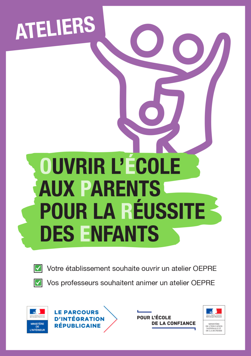 OEPRE (Відкриття школи для батьків задля успіху дітей) — це майстерня для батьків учнів, які не володіють французькою. Вона допомагає їм вивчати французьку мову та краще розуміти шкільну систему, щоб підтримати освіту своїх дітей.